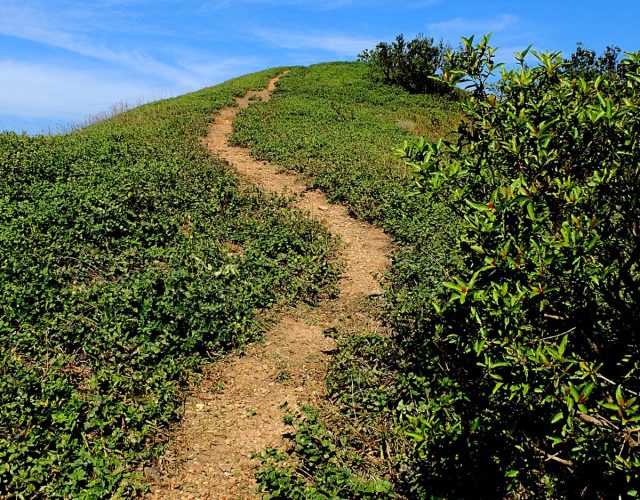 We will now be poised on the edge of a sheer drop several thousand feet deep – take a minute to breathe in the views around. The vernacular name of the hill to your left translates to “memento” – and this trail derives it’s name from that.
