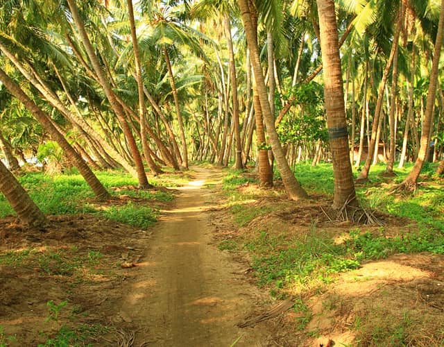 The 200m wide peninsula is blanketed with coconut groves and the little trail that meanders through the coconut plantations is perfect for hiking. There are no roads here, which means a complete absence of all motorized vehicles. The trail is interspersed with scenic vistas of the backwaters, and heading west for only a few metres reveals the desolate beach.