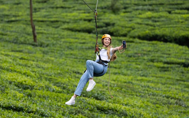 450m of an adrenaline rush over the lush green tea estates rolling below. We use internationally certified (UIAA/CE) equipment at all our ziplines. All our staff are well experienced, fully trained in the activity itself and in first aid. We are recognized by the Ministry of Tourism (GoI) as an Approved Adventure Tour Operator and also recognized by the Kerala state government.